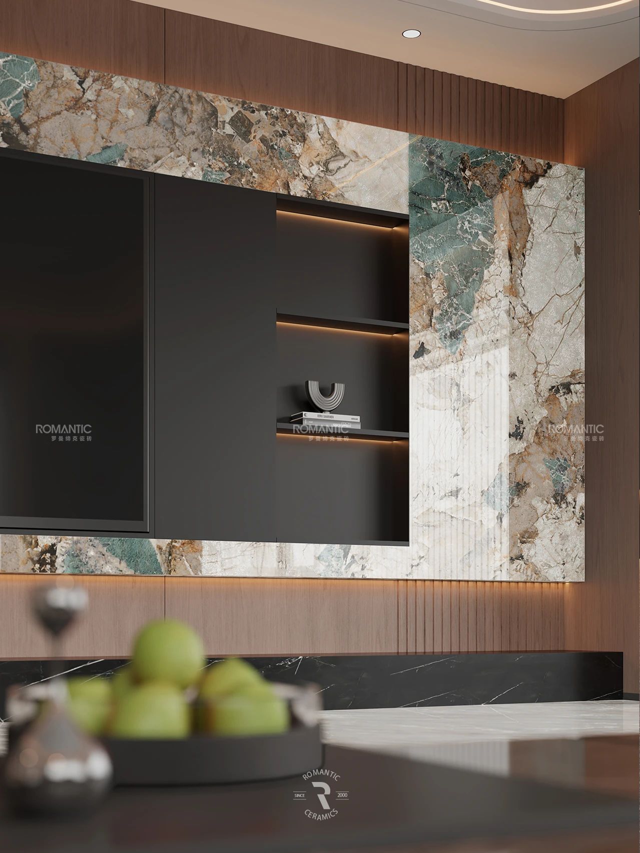 當冰冷的建材被賦予藝術的靈魂,羅曼締克瓷磚-山西長治旗艦店,以前沿的設計、豐富的選材、沉浸的體
